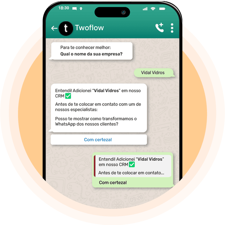 Ofereça a oportunidade de explorar sua empresa e colete informações adicionais sobre leads e clientes para entender suas necessidades e interesses. Faça perguntas chave e registre automaticamente em nosso CRM.